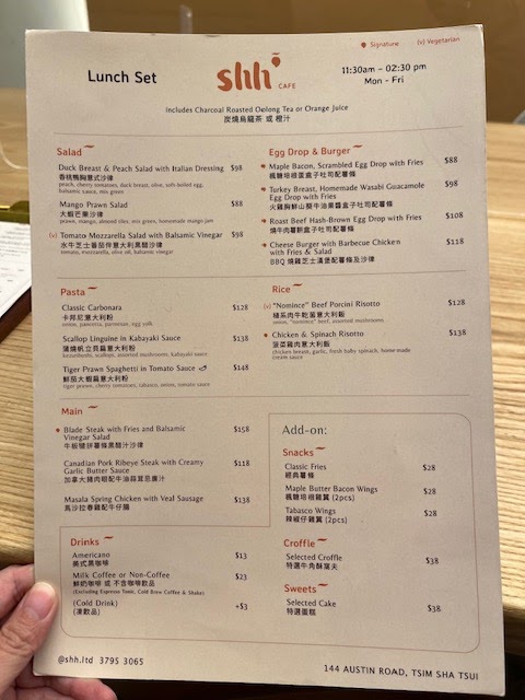 Each dish reflects attention to detail, promising a satisfying dining experience. The soothing wooden tones enhance the vibe, making Shh Cafe not just a dining spot, but a destination for comfort and culinary delight.
